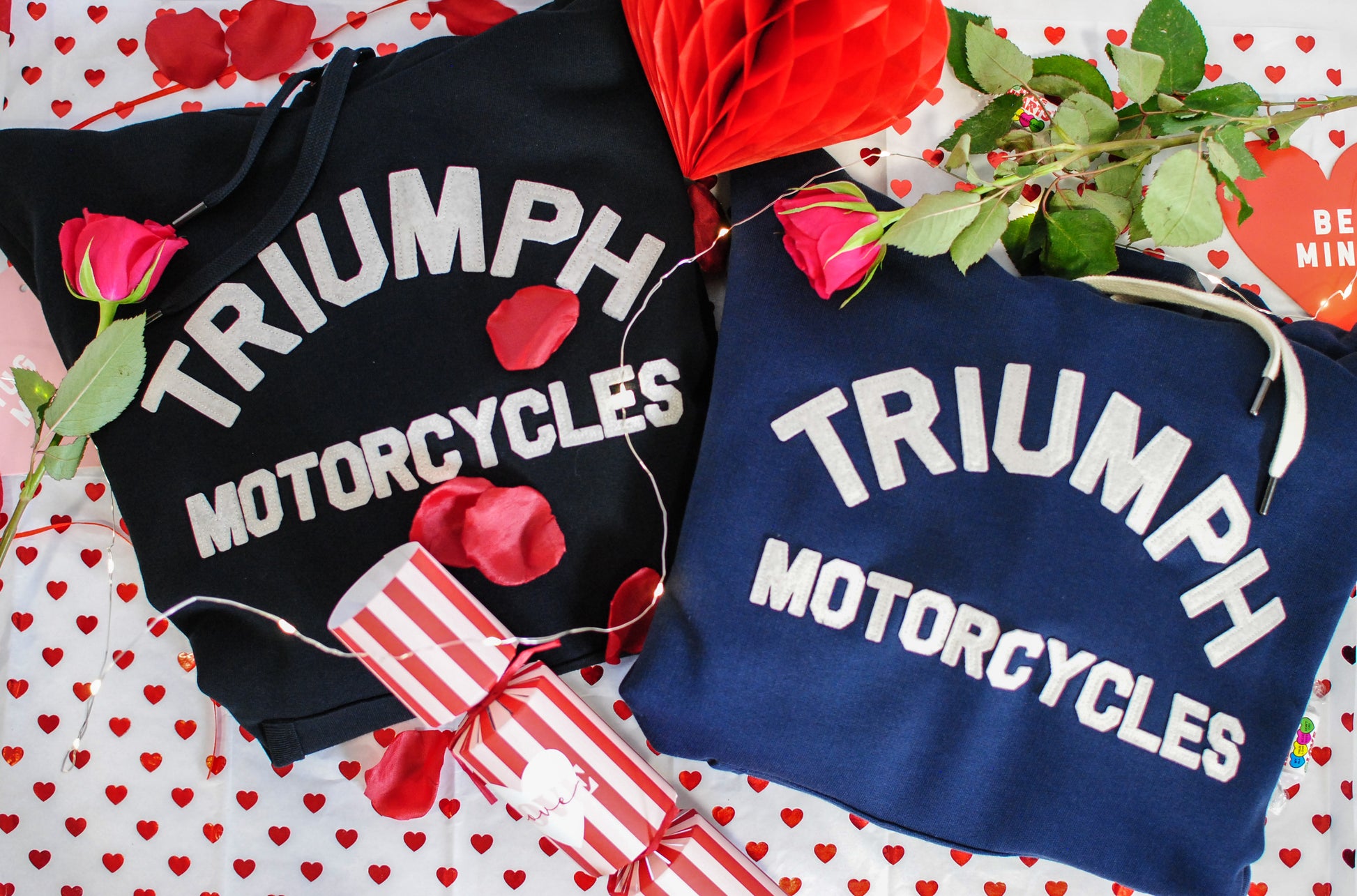 Heavyweight 100% cotton fleece back hooded sweatshirt with arched Triumph Motorcycles felt applique lettering, large kangaroo pocket and drawstring hood.
