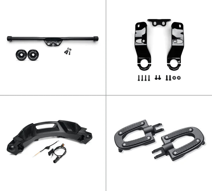• Includes: Endgame Rider Footpegs, Flat-Out Bar- Black, Low Rider ST Tip-over Bar Bracket, H-D™ Audio by Rockford Fosgate™ - Inner Fairing Audio Kit