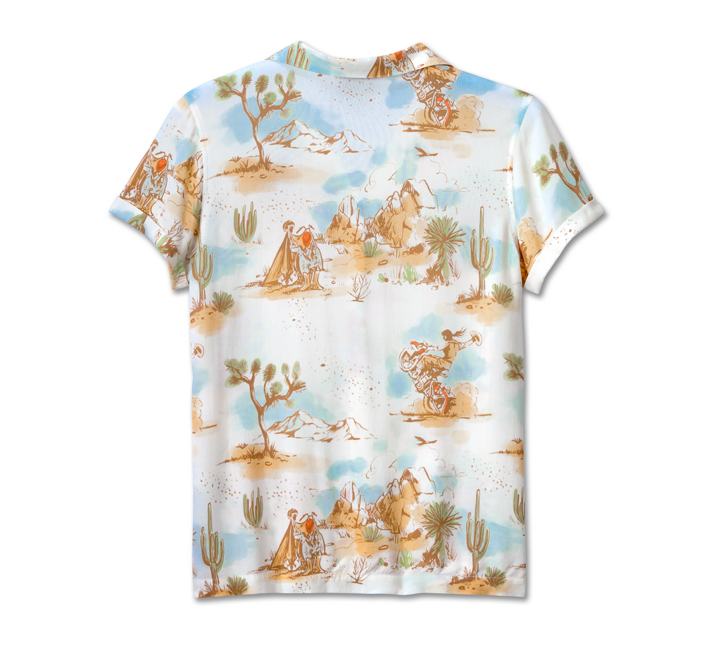 Great Plains scenery gets a Harley-Davidson upgrade on the Limited-Issue Out West Printed Woven Shirt.